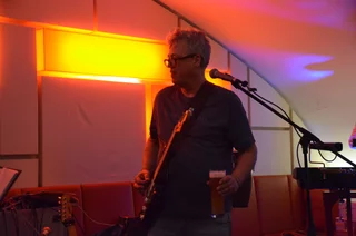 Der Tastenmann am Mikro, der manchmal auch Congas, Kuhglocke und Schellenkranz bedient und die Stücke mit Ansagen verbindet, die ihn manchmal sogar selbst überraschen