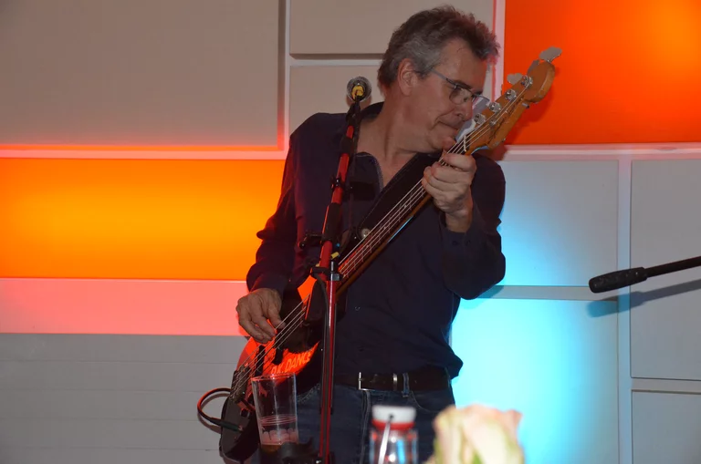 Der "tanzende Bassmann”, der “D.K. Dance" auf seinen Bass geklebt hat, was nicht nur Name seiner früheren Band war, sondern auch doppelt gemeinter Inhalt seines Bassspiels